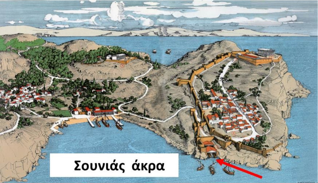Τέμενος Αθηνάς Σουνιάδος .Στο βάθος δεξιά της εικόνας ο ναός του Ποσειδώνα.