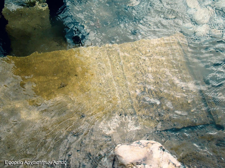Το εύρημα ανακαλύφθηκε στα ρηχά νερά των ποταμών, ανέφερε η Εφορεία Αρχαιοτήτων Άρτας σε ανακοίνωσή της στο Facebook την Παρασκευή, παρέχοντας μια πρώτη εικόνα από το σπάνιο εύρημα επί τόπου, προτού μεταφερθεί στο Αρχαιολογικό Μουσείο Άρτας.
