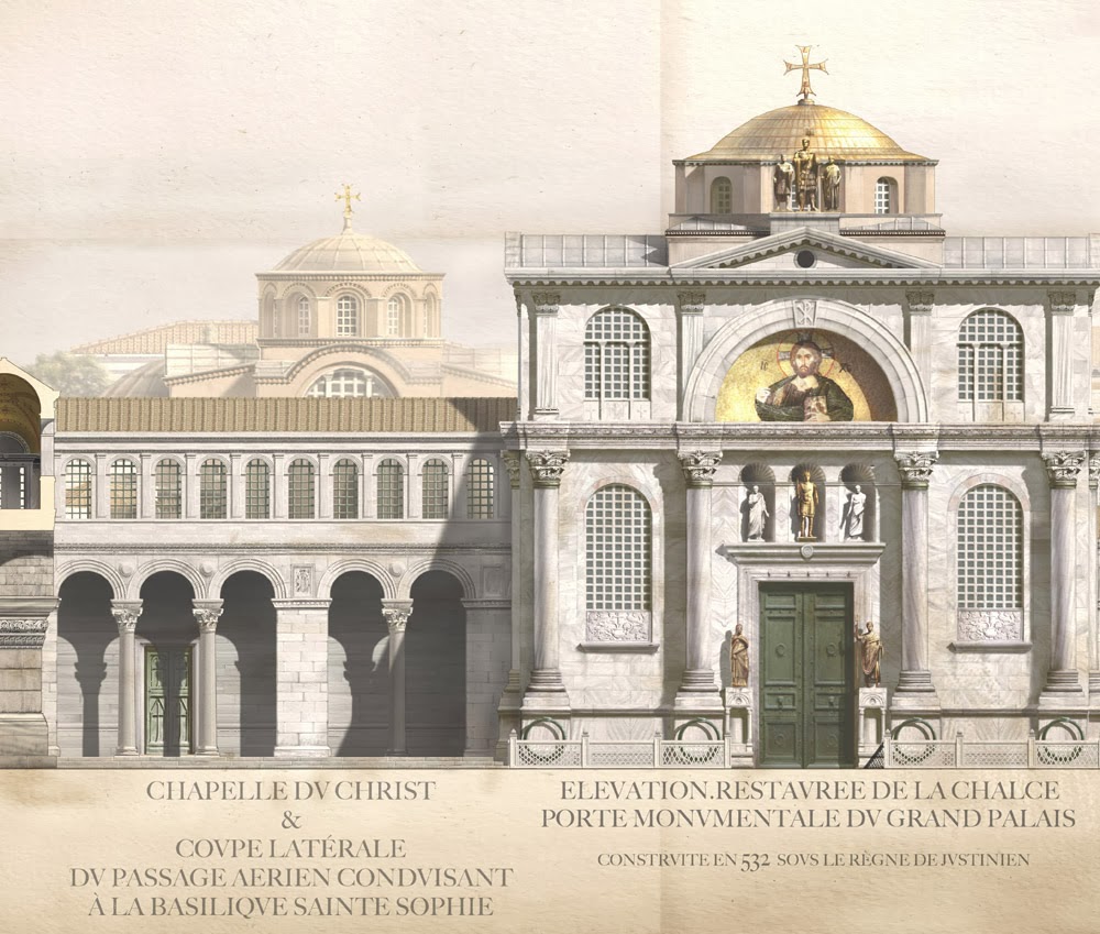 Τομή της εισόδου του ανακτόρου του Βουκολέοντος, στην ακτή της θάλασσας του Μαρμαρά.
