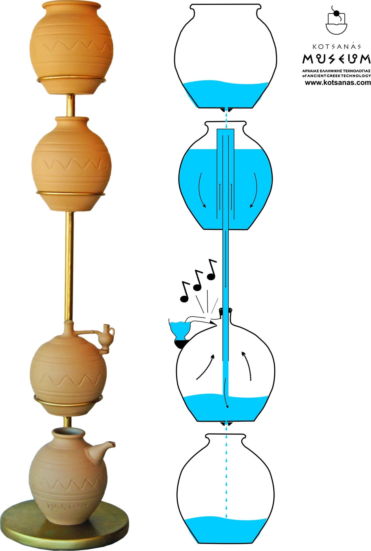 Η πρώτη συσκευή αφύπνισης παγκοσμίως έφερε τη σφραγίδα του σοφού της αρχαιότητας και ξυπνούσε τον Πλάτωνα με σφυρίγματα! Ένα υπερκείμενο κεραμικό δοχείο τροφοδοτούσε μέσω ακροφύσιου ένα δεύτερο δοχείο, αδειάζοντας την προγραμματισμένη χρονική στιγμή με ορμή (μέσω ενός εσωτερικά τοποθετημένου αξονικού σιφωνίου) στο επόμενο κλειστό δοχείο. Ο εγκλωβισμένος αέρας εξερχόταν με πίεση σφυρίζοντας από μια σύριγγα στην κορυφή του. Μετά τη λειτουργία του μάλιστα το ξυπνητήρι επέστρεφε αυτόματα στην αρχική του κατάσταση, ώστε να επαναρυθμιστεί για την επόμενη αφύπνιση…